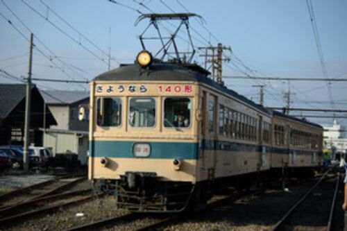 昨日の福井鉄道140形さよなら運転の写真をもう1枚貼っておきます。さよなら運転が終って、西武生の車庫へ戻ってきて、最後の入庫をするところです。80形、120形のときは、撮影会が予定されていましたが、今回はそういう予定はなかったけども、マニア…